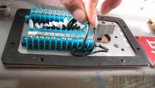 打开断路器的底板,A相互感器的四根导线接于端子排上。其中三根导线在距离端子排200mm处有接头,接头用黑胶布包裹,外观看有裸漏现象,断路器壳体有直径4厘米的椭圆击穿弧光接地痕迹。其中黄色导线对地有多根烧断致使铜线烧化呈铜珠焊在壳体上,这是电流互感器烧毁的主要原因。